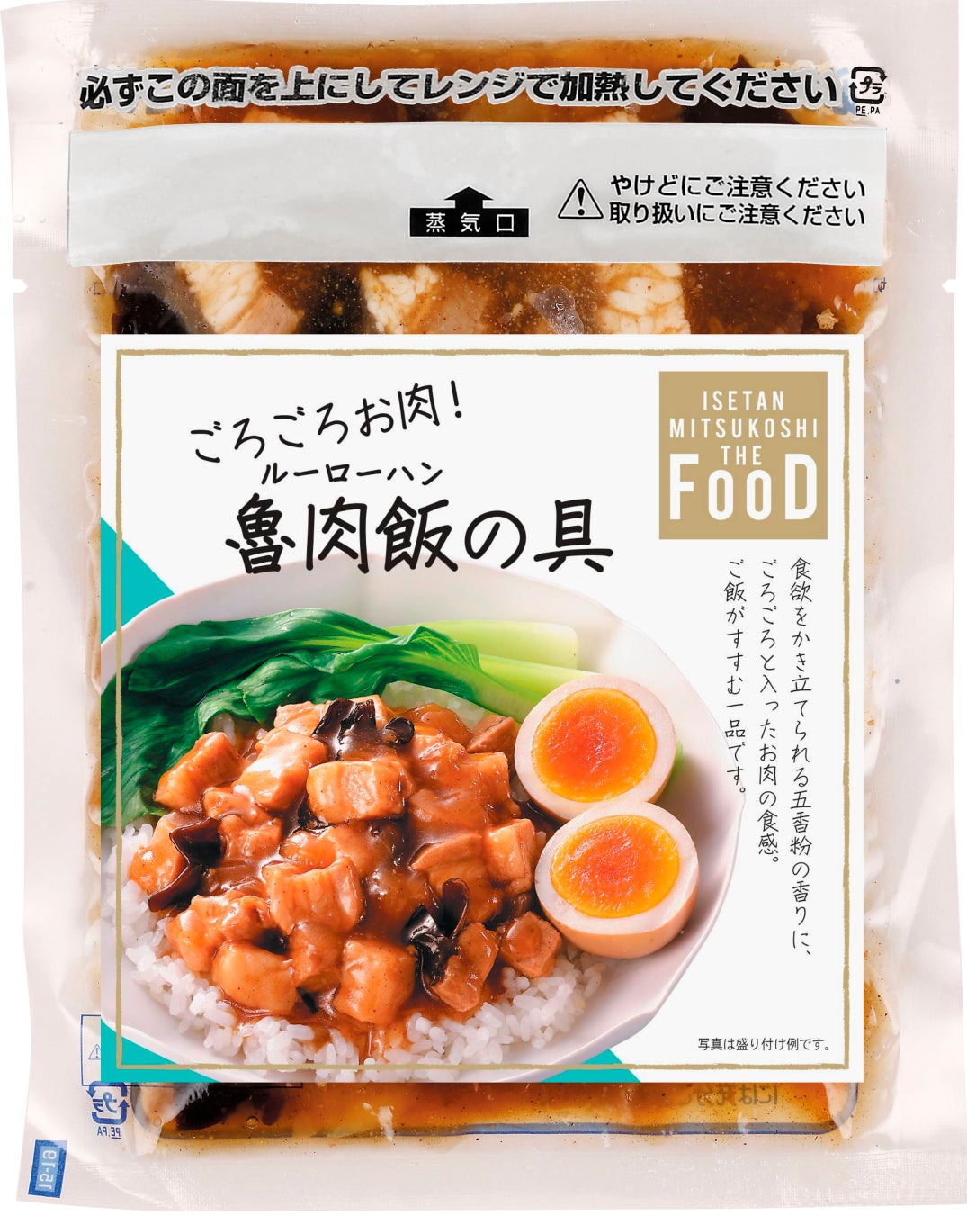 「ごろごろお肉!魯肉飯(ルーローハン)の具」は、五香粉の風味が広がる本格的な味に仕上げました。袋を開けると角切り肉がごろっと出てきて、具材感を楽しめること間違いなし。豚バラの旨味と甘辛い味付けにご飯を食べ進めます。