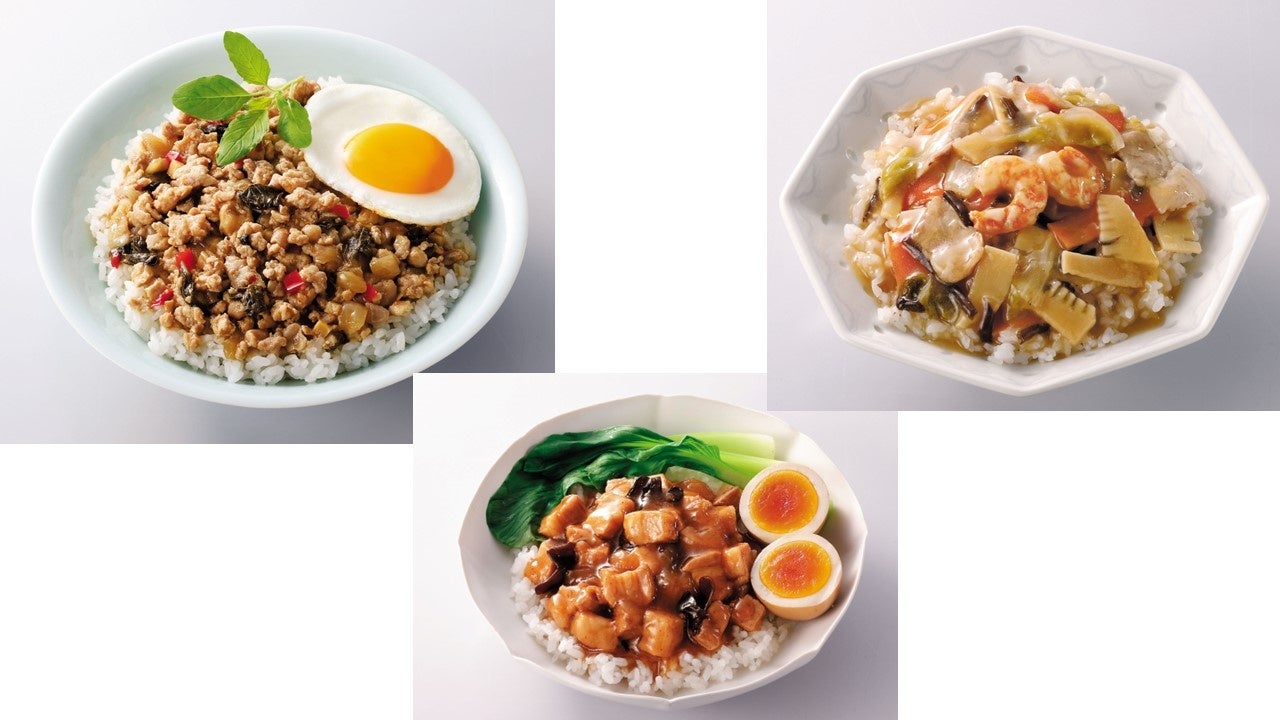 急速冷凍で素材のおいしさそのまま!「際立つ香り!ガパオライスの具」「6種の具材が入った中華丼の具」「ごろごろお肉!魯肉飯の具」