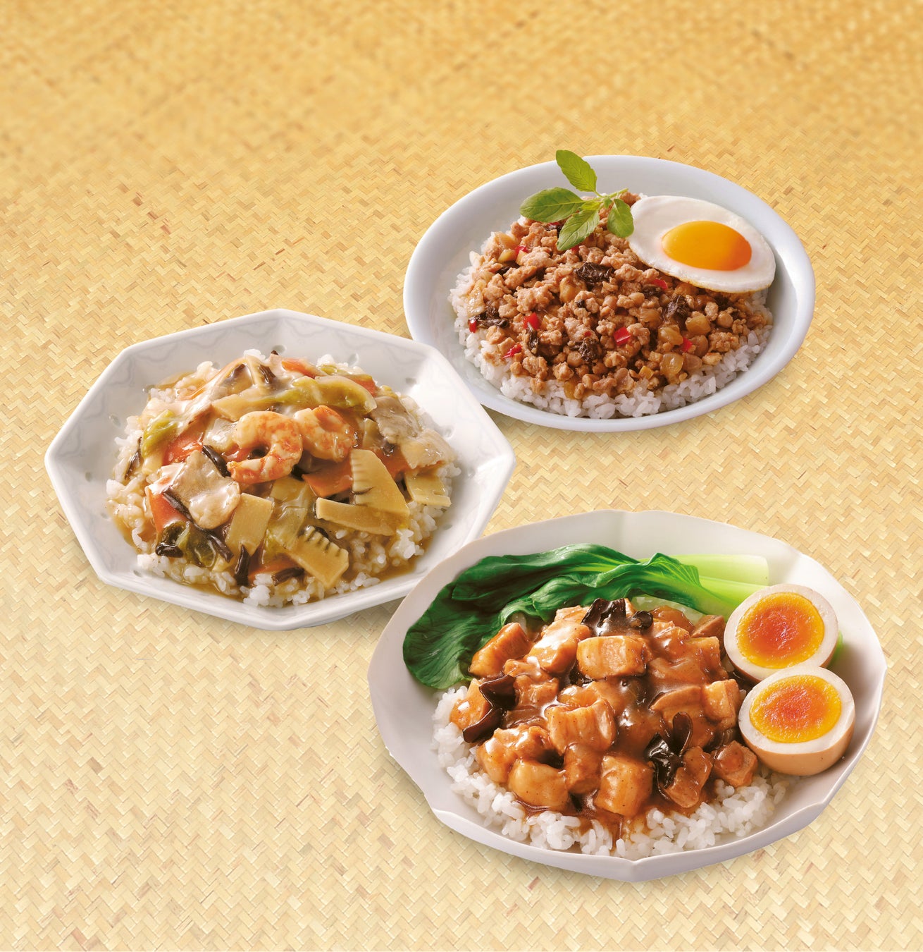 - 急速冷凍で素材のおいしさそのまま!「際立つ香り!ガパオライスの具」「6種の具材が入った中華丼の具」「ごろごろお肉!魯肉飯の具」