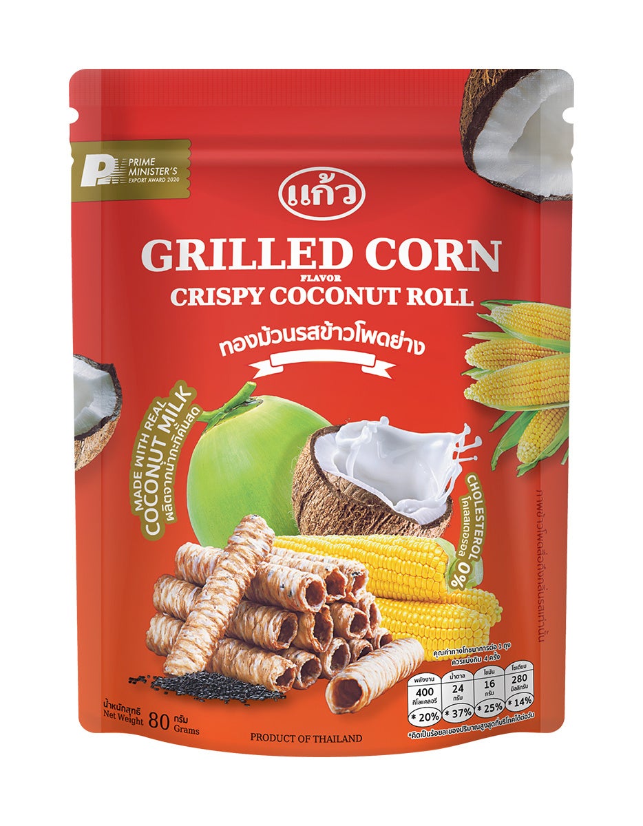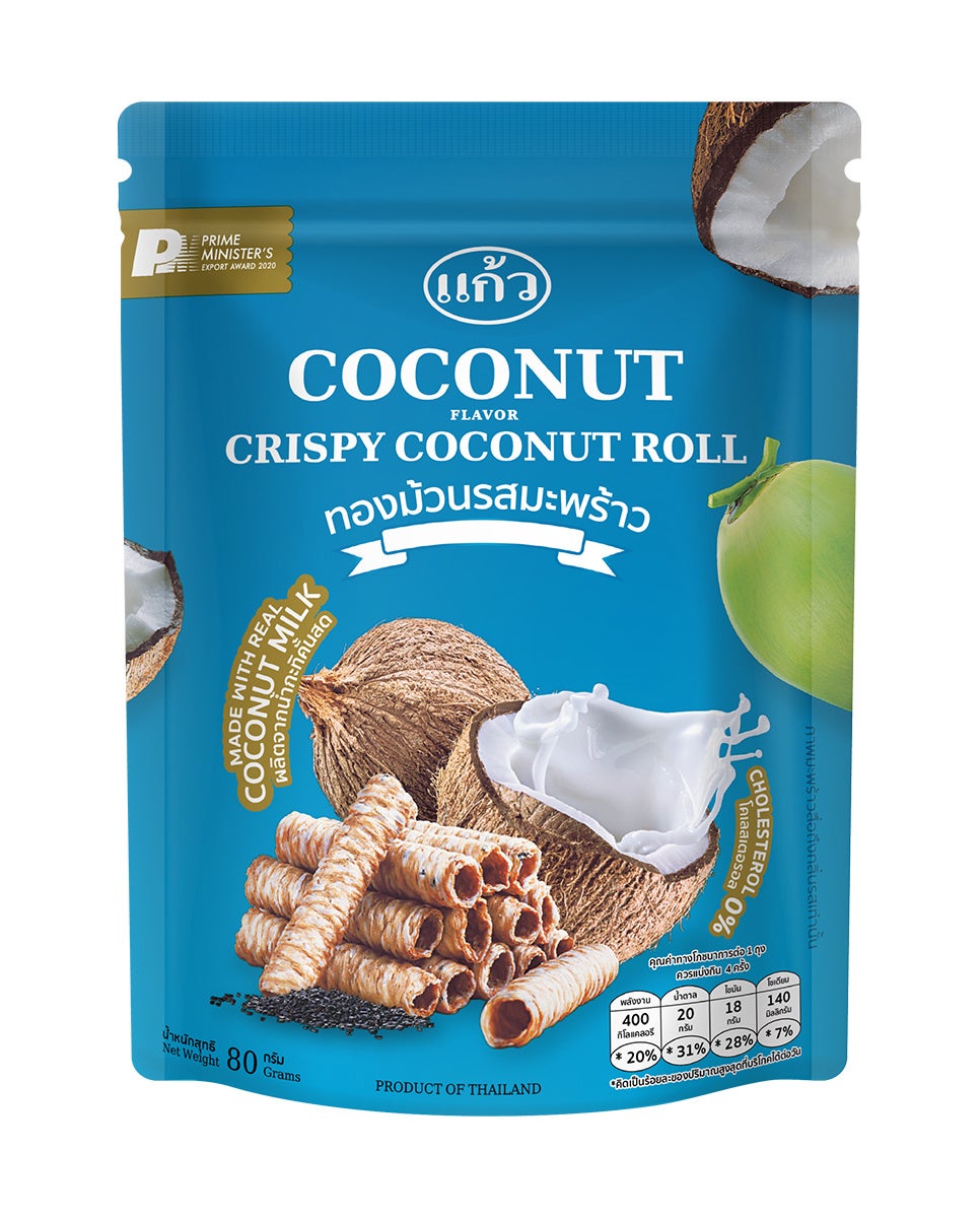 - タイ発 ローカルスナックブランド ゲーオ(Kaew)より〈クリスピーココナッツロール〉3種が新登場。