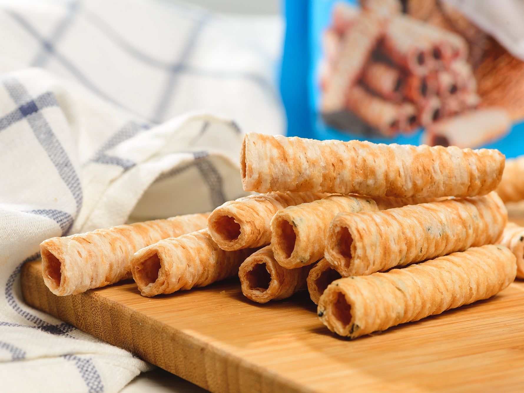 説明:ロール状にさくっとふんわり焼き上げたココナッツスナック。ココナッツミルクを製造工程で搾り、すぐに生地に練り込むことで、海に近いミネラル豊富な土壌で育ったココナッツ本来の甘さと香りが包み込まれています。