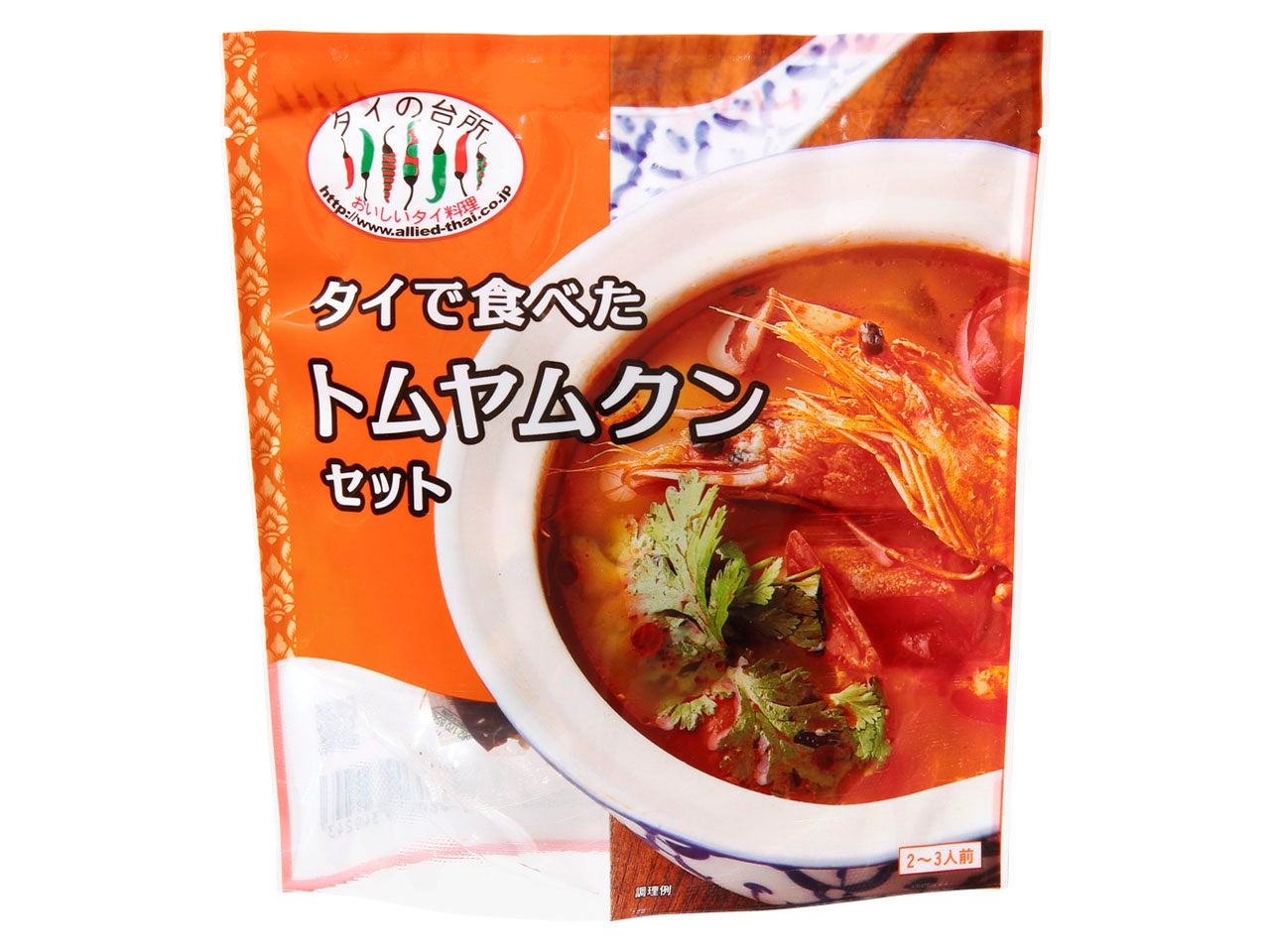 特製トムヤムクンペーストとタイのハーブが入った辛味と酸味が楽しめるトムヤムクンの本格手作りキット。必要な専門調味料とハーブが必要な分だけセットされているので、家庭で本場の味を手軽に再現できます。