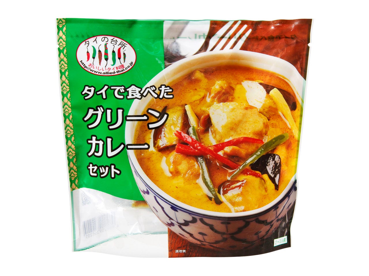 カレーペースト、ココナッツミルク、ナンプラー、タイのハーブが入ったグリーンカレーの本格手作りキット。必要な専門調味料とハーブが必要な分だけセットされているので、家庭で本場の味を手軽に再現できます。