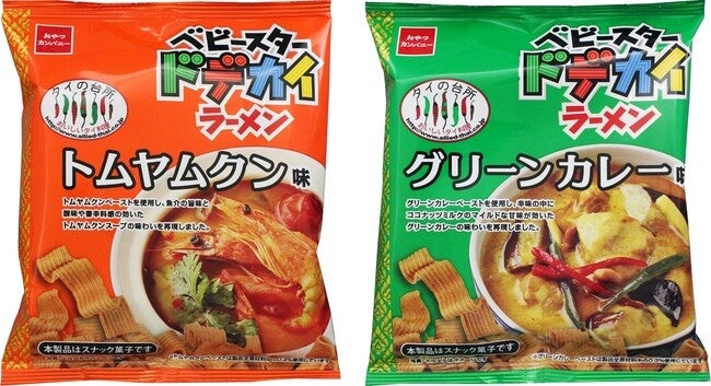 - ベビースターラーメンとタイの台所がコラボ!ベビースタードデカイラーメン<トムヤムクン味><グリーンカレー味>が期間限定で登場!