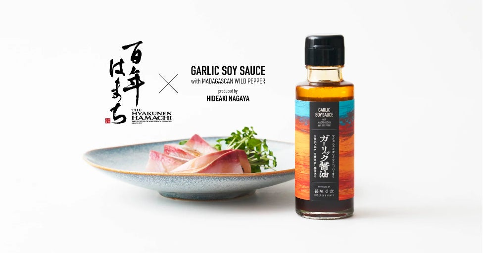 じっくり炒めた国産ニンニクの香味オイルと国産蔵出し醤油の食欲そそる組み合わせを、マダガスカル産野生胡椒の華やかな香りで彩った、旨さ鮮烈「ガーリック醤油」と「百年はまち炙り」がコラボレーション。