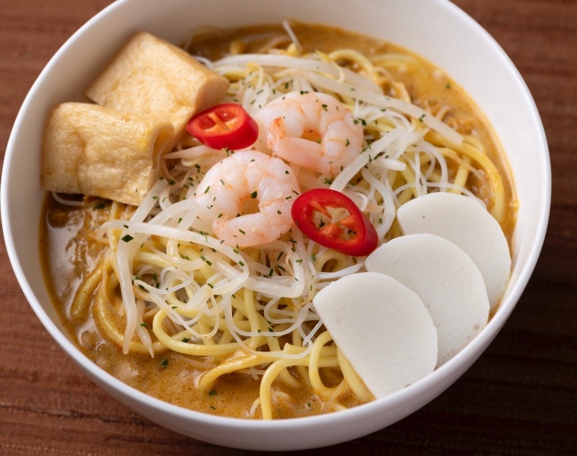 シンガポールスタイルのラクサは、ココナッツミルクの甘さと海老の出汁、独特の香辛料が効いたコクとうまみのあるスパイシーなスープヌードルです。ビーフンとちゃんぽん麺の2種類のヌードルを使用していますので、食感の違いも、お楽しみいただけます。