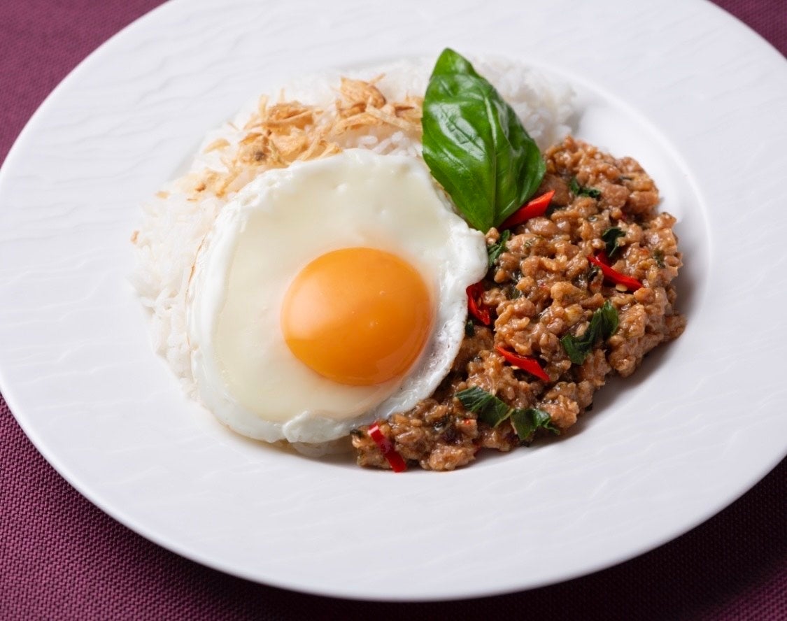 タイの定番料理ガパオライス。バジル、ナンプラー、バイマックルーで丁寧に仕上げたコク深い味わいのガパオミートです。目玉焼きをトッピングするのもおすすめです。