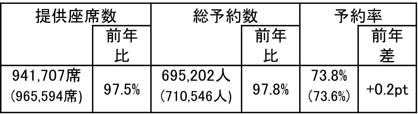 1.国内線 (JAL、J-AIR、JAC、HAC、JTA、RAC各社合計) ※カッコ内は前年の数字