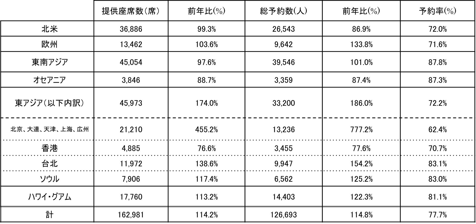 (1)方面別 (日本発着合計) 注:コードシェア便のデータを含む。