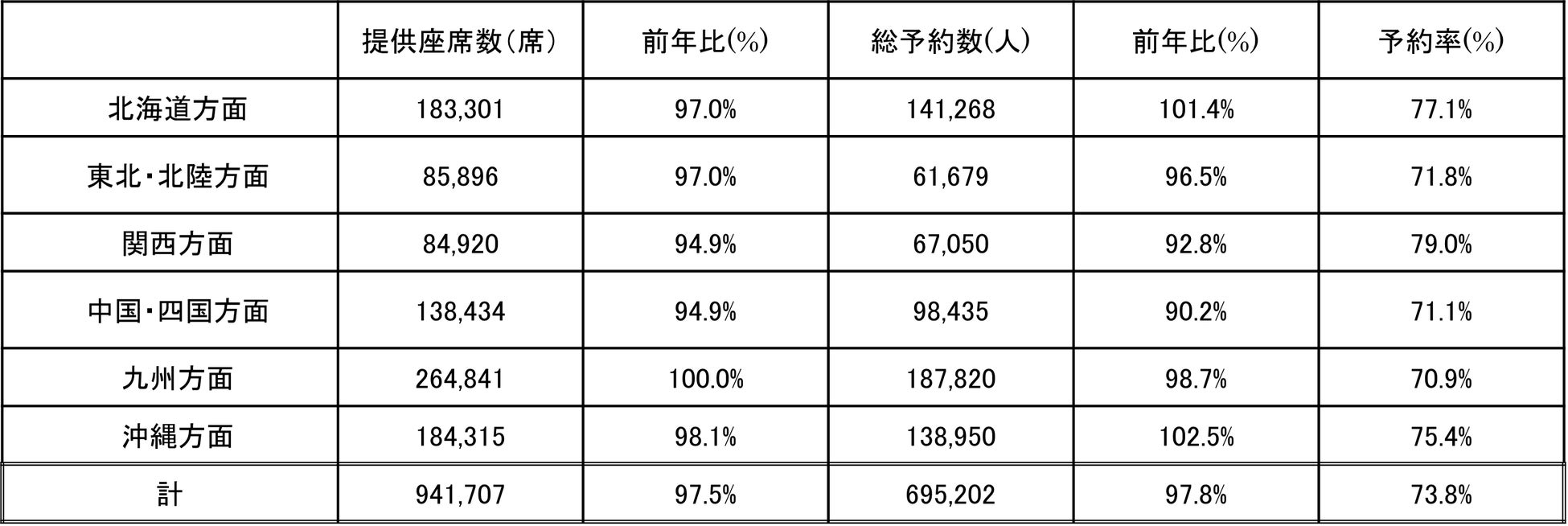 ◆予約数は北海道方面と沖縄方面で前年を上回り、好調に推移しています。