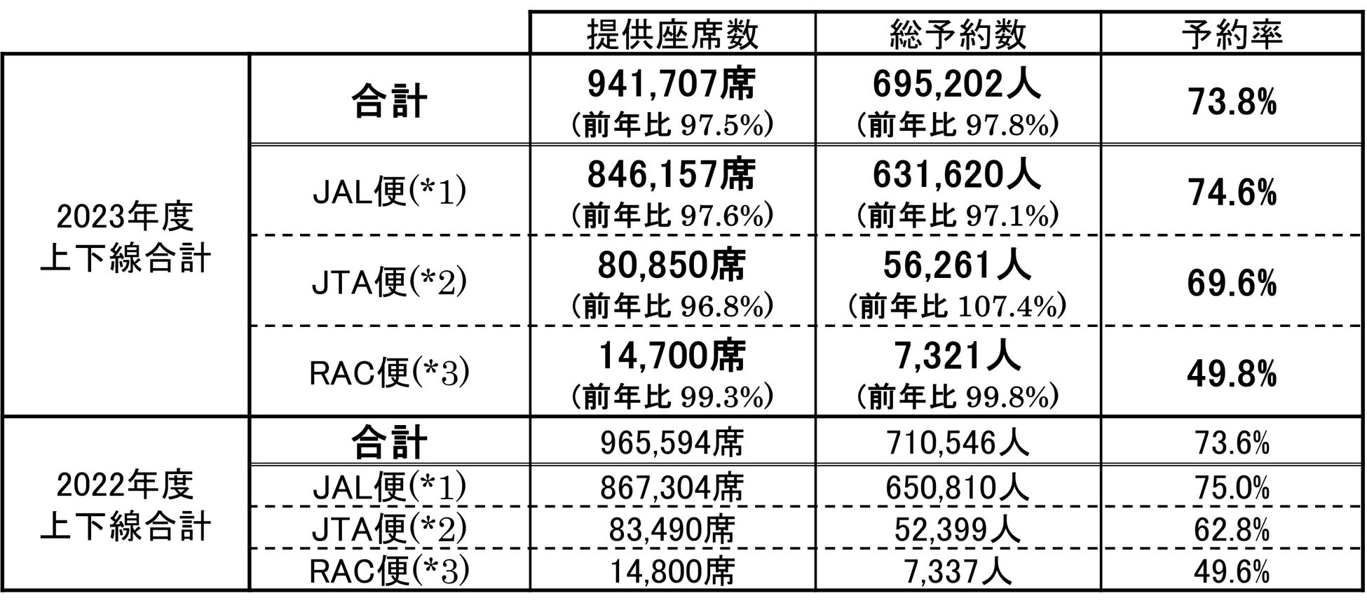 (*1) JAL/J-AIR/JAC/HAC/JTA運航 (*2)日本トランスオーシャン航空 (*3)琉球エアーコミューター