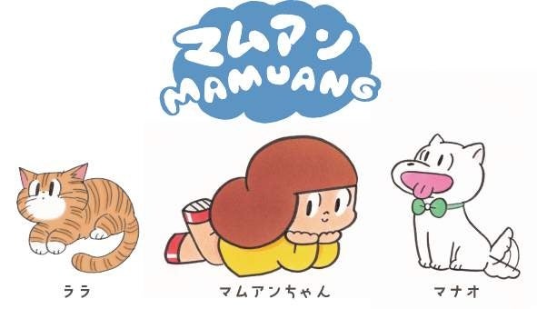 まわりをしあわせにする素直でピュアな女の子。なまえの由来は頭の形がマムアン(タイ語でマンゴー)みたいだから。ペットの犬はマナオ、猫はララ。お友だちのしたくんとマプラオも名わき役。ハッピーに生きるためのメッセージを私たちに伝えてくれます。