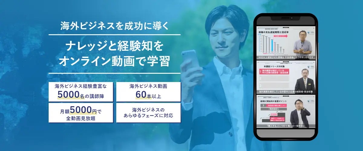 海外ビジネスに特化した60本以上の動画コンテンツをご用意