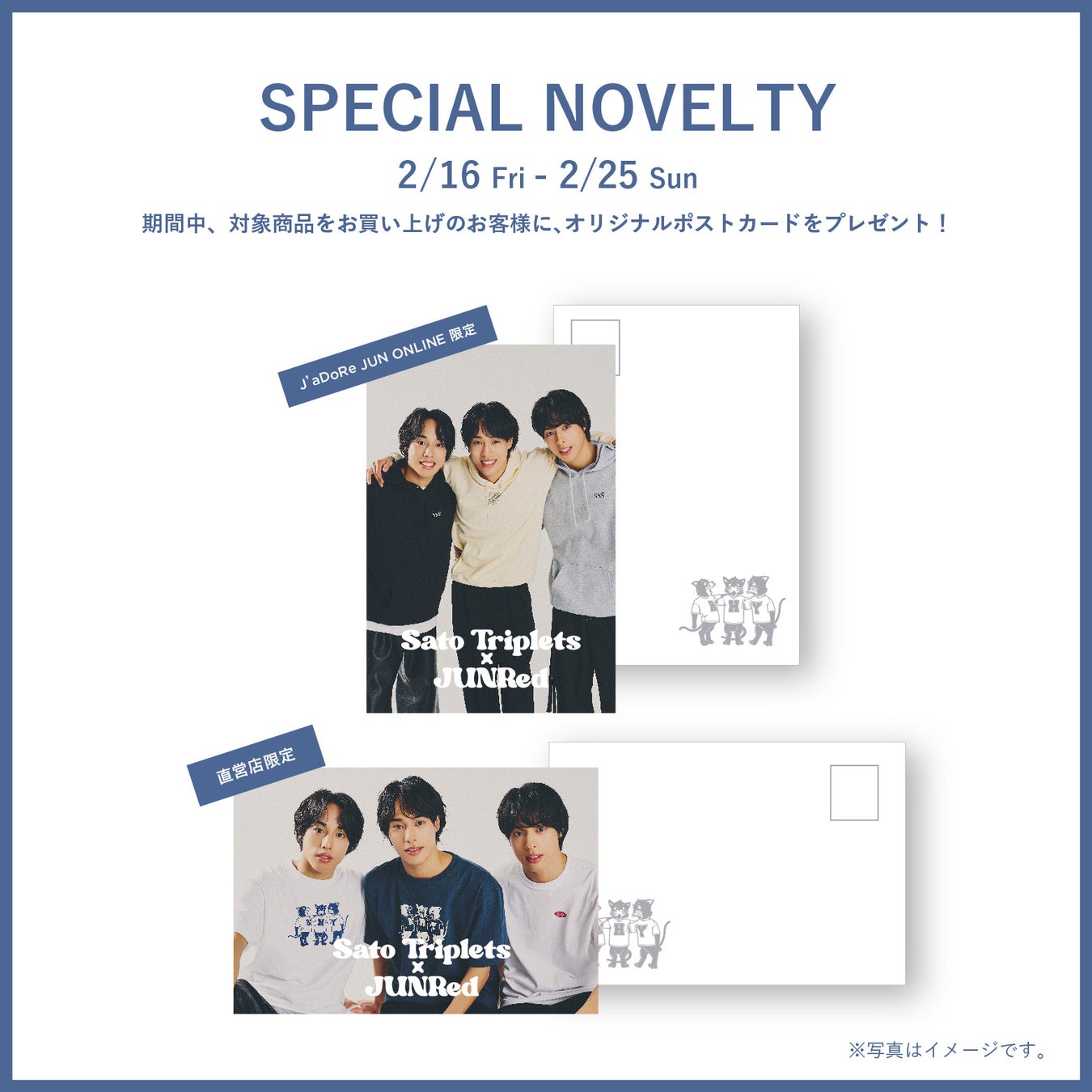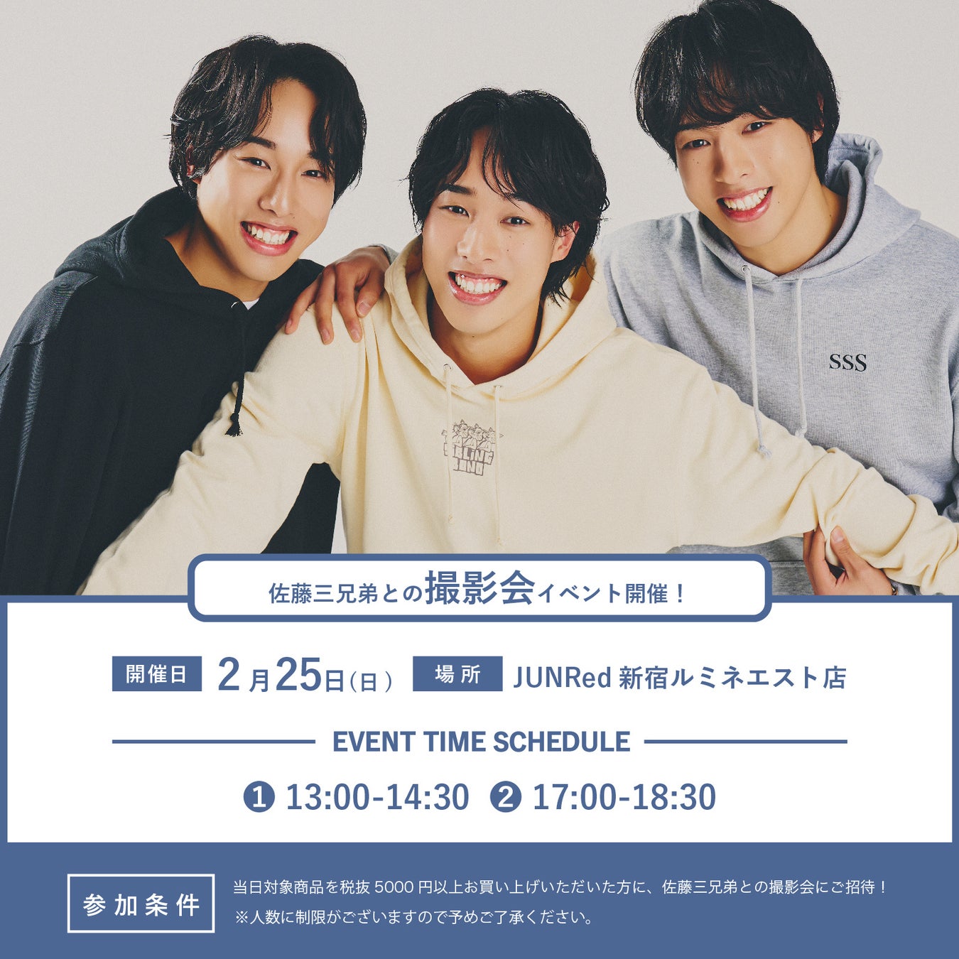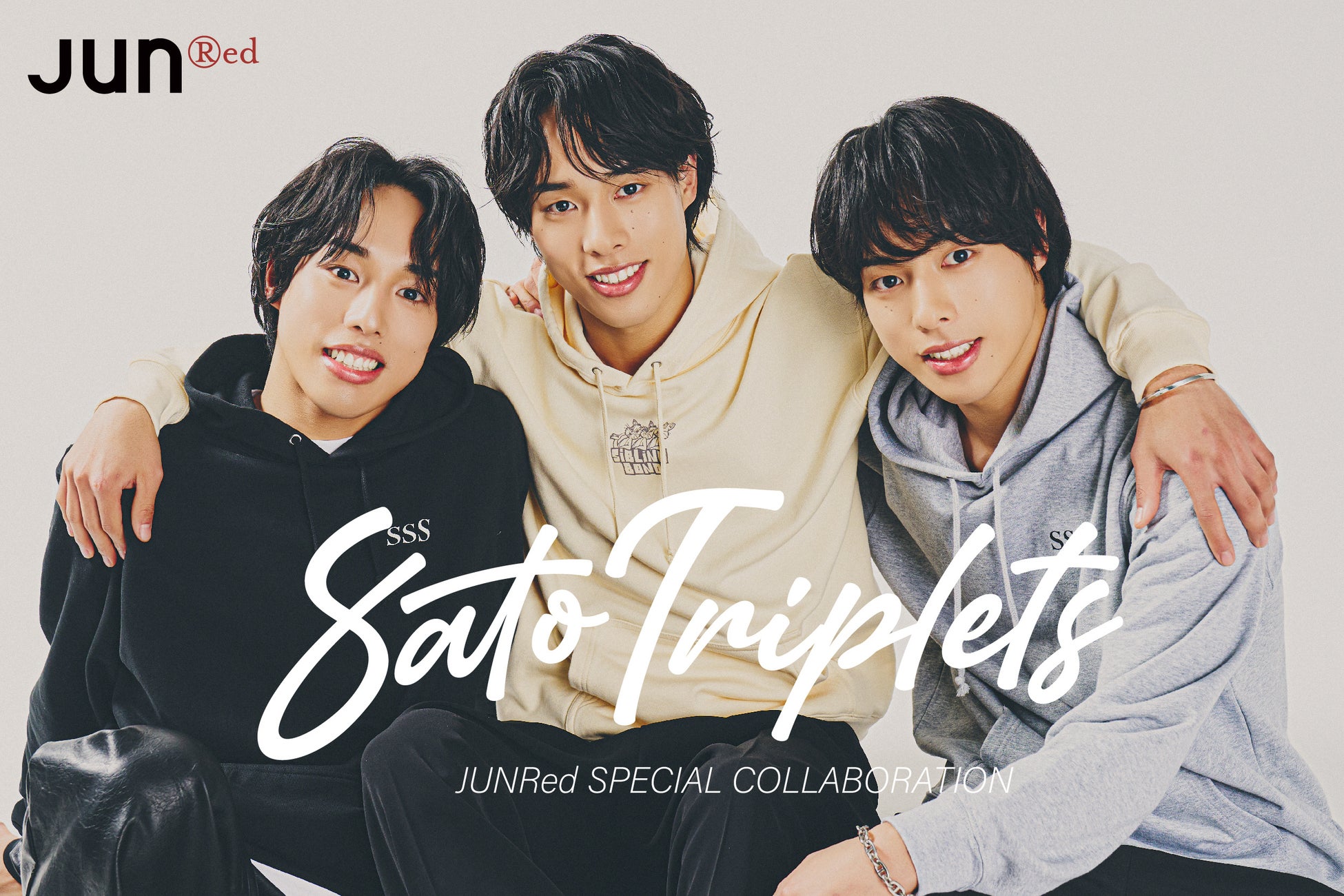 メンズアパレルブランドJUNRed( ジュンレッド ) はSNS総フォロワー数320万人を誇るイケメン三つ子、佐藤三兄弟とのコラボレーションアイテムを2月16日(金)より受注生産で発売します。