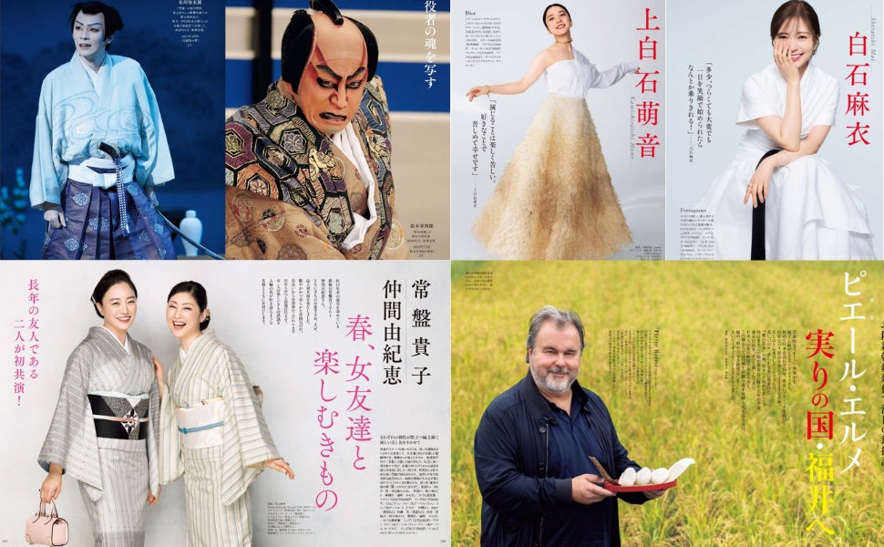 待望の新連載もスタート。五木寛之さんのエッセイ「こころのレシピ」、ご一家の古民家暮らしに密着した「タサン志麻の田舎暮らし 春」。春を告げる桜特集、今年は「小学校の桜」で懐かしい思い出を呼び起こしてはいかがでしょう。また、今年1月にご帰幽された篠山紀信さんを偲び、追悼特集を掲載します。さらに、上白石萌音さん、小池栄子さん、白石麻衣さん、舘ひろしさん、西野七瀬さんがまとうトップブランドの春夏最新コレクション、ピエール・エルメさんの福井探訪、常盤貴子さんと仲間由紀恵さんの初共演、「母と娘のウェルネスBOOK」と「ハリー・ウィンストン」の別冊付録など。春爛漫を詰め込んだ盛りだくさんの内容でお届けします。
