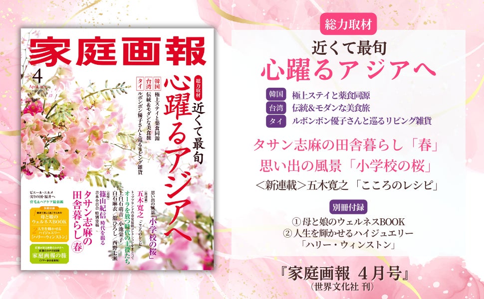 - 注目はアジア旅!! 韓国・台湾・タイ最旬情報/《追悼》篠山紀信ほか『家庭画報 4月号』3月1日発売