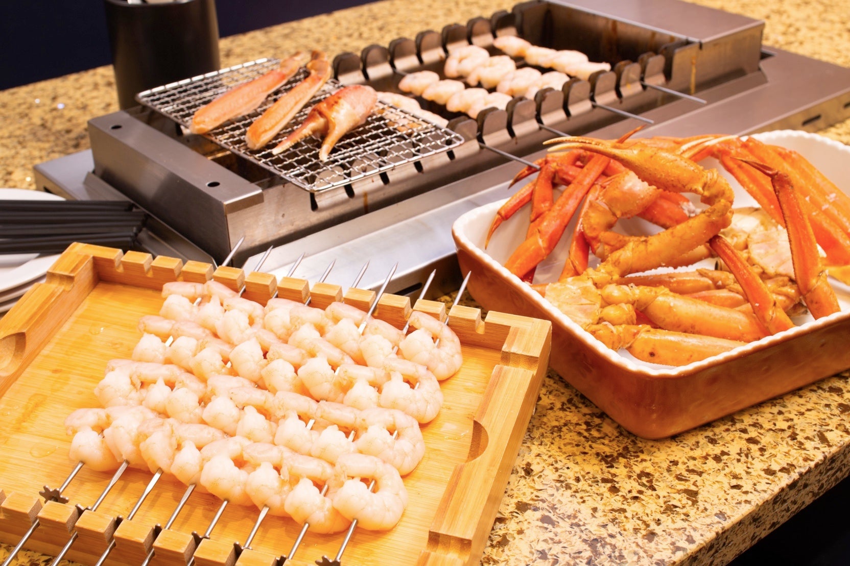 「カニエビ・サーモン串食べ放題+ビュッフェ (ソフトドリンク付き)」