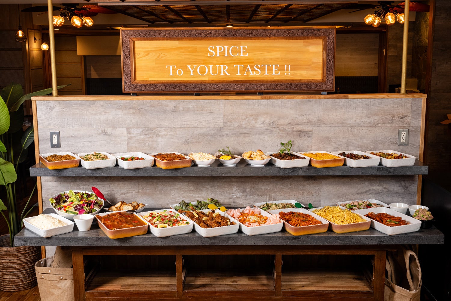 +500円でサーモン串食べ放題も!20種類以上のスパイスやソース・ビュッフェと合わせて無限カスタマイズをお楽しみください