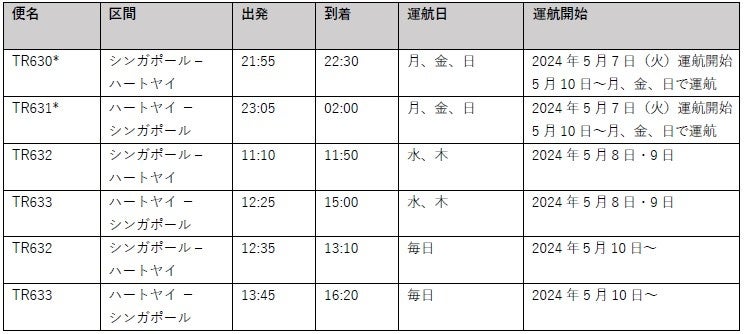 *1.シンガポールからクラビとハートヤイへの路線は、現在エアバスA320型機で運航されています
