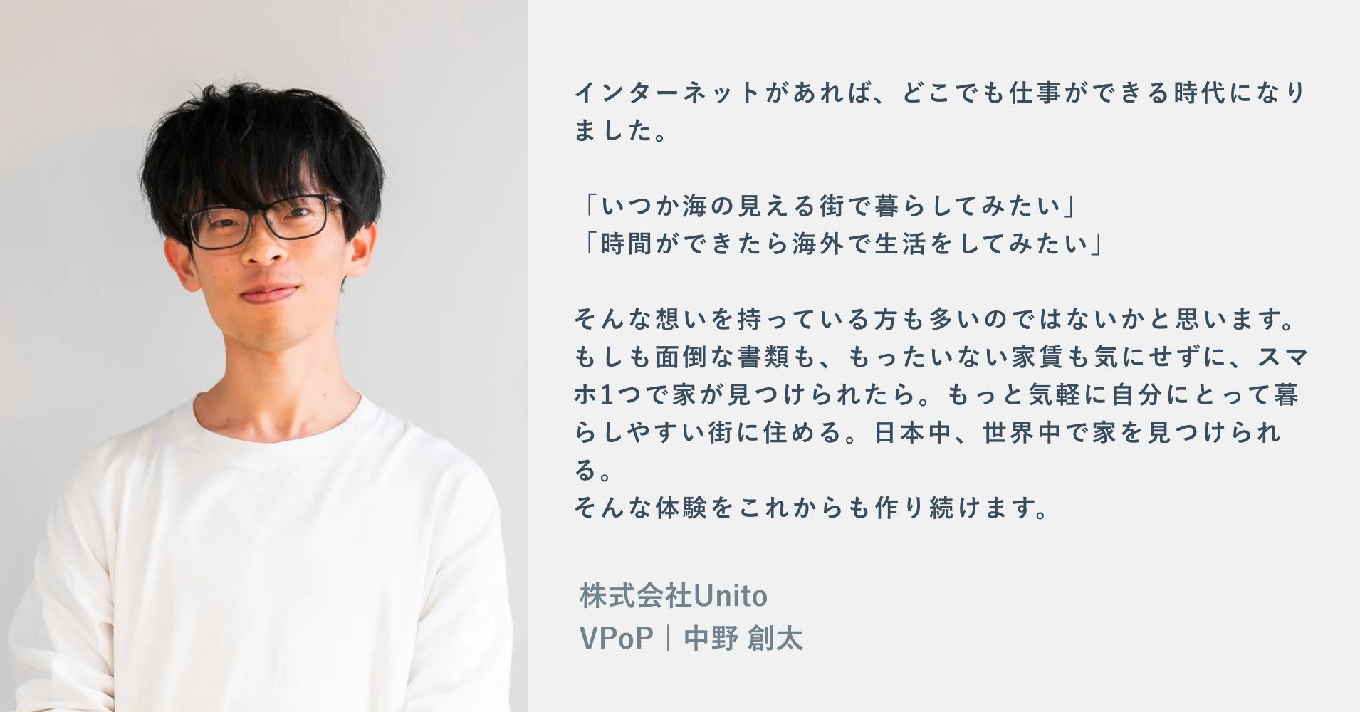 ■最短即日入居・スマホ契約可能な家具家電付きのお部屋を探せるプラットフォーム「unito」の運営