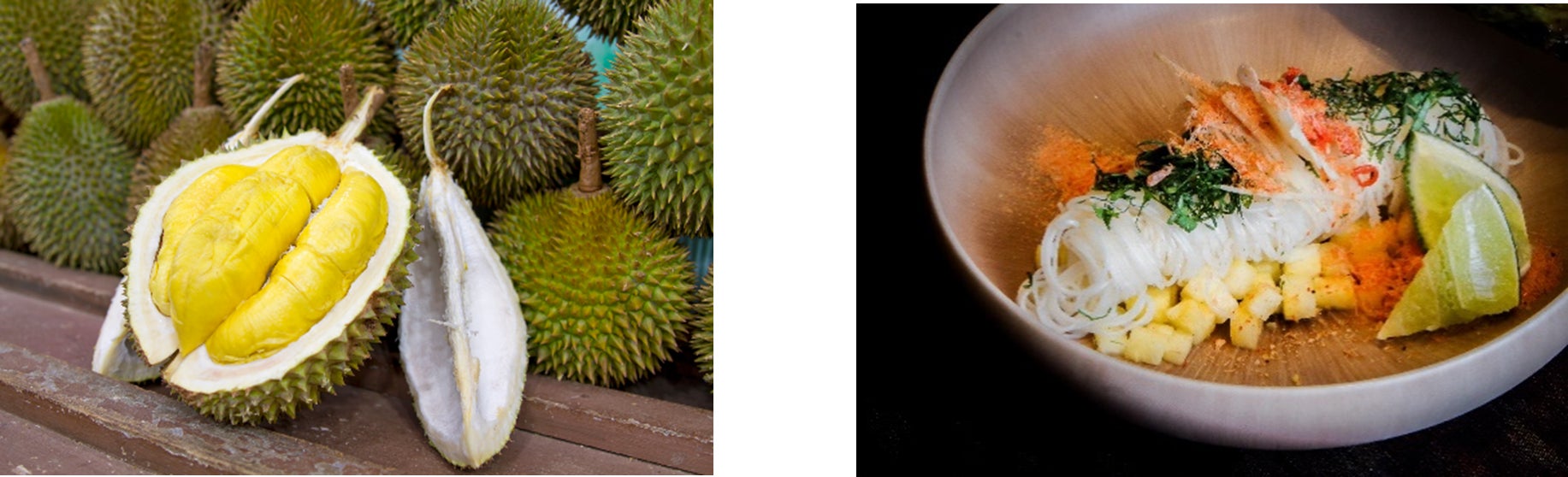 ドリアンスティッキーライス:日本ではめったにお目にかかれない独特の風味を持つドリアンを使ったスティッキーライス。タイのデザートを代表するこのメニューを、ザ・ギャラリーで特別にご堪能ください。価格:2,783円(税・サ込)