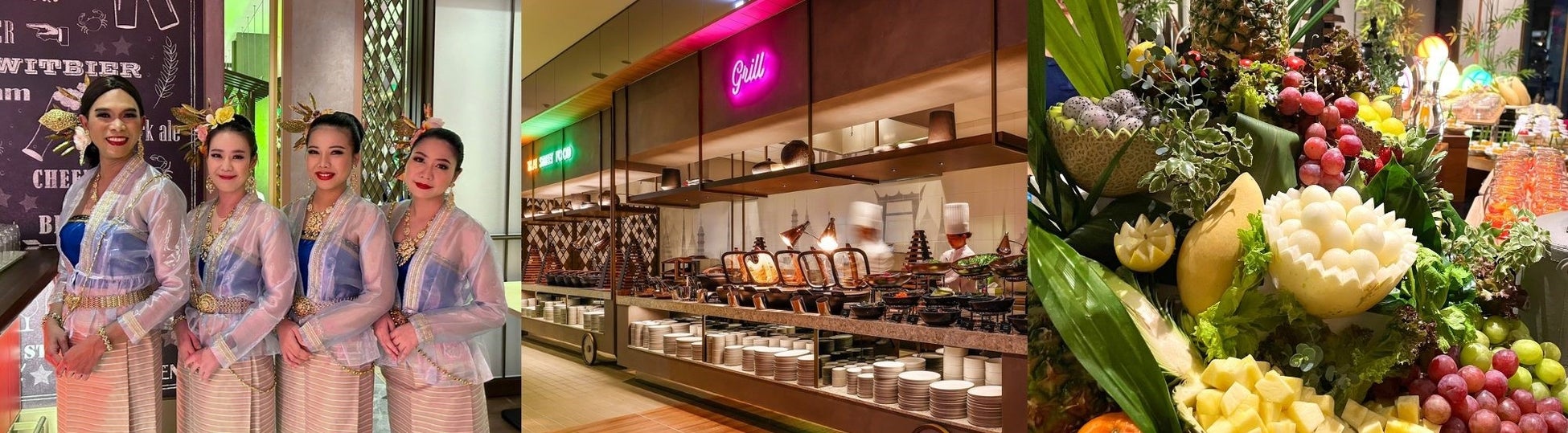 2023年に開業したセンタラグランドホテル大阪で祝う初めての「ソンクラーン」は、タイ人シェフの料理長ソンポン・アサセットが腕を振るうタイの各地の伝統的なお料理をビュッフェ形式にてご提供します。またタイビールやタイティー、マンゴーシェイクやバタフライピーアイスティーなど、タイを代表するドリンク類も豊富にご用意し、フリーフローでお楽しみいただけます。