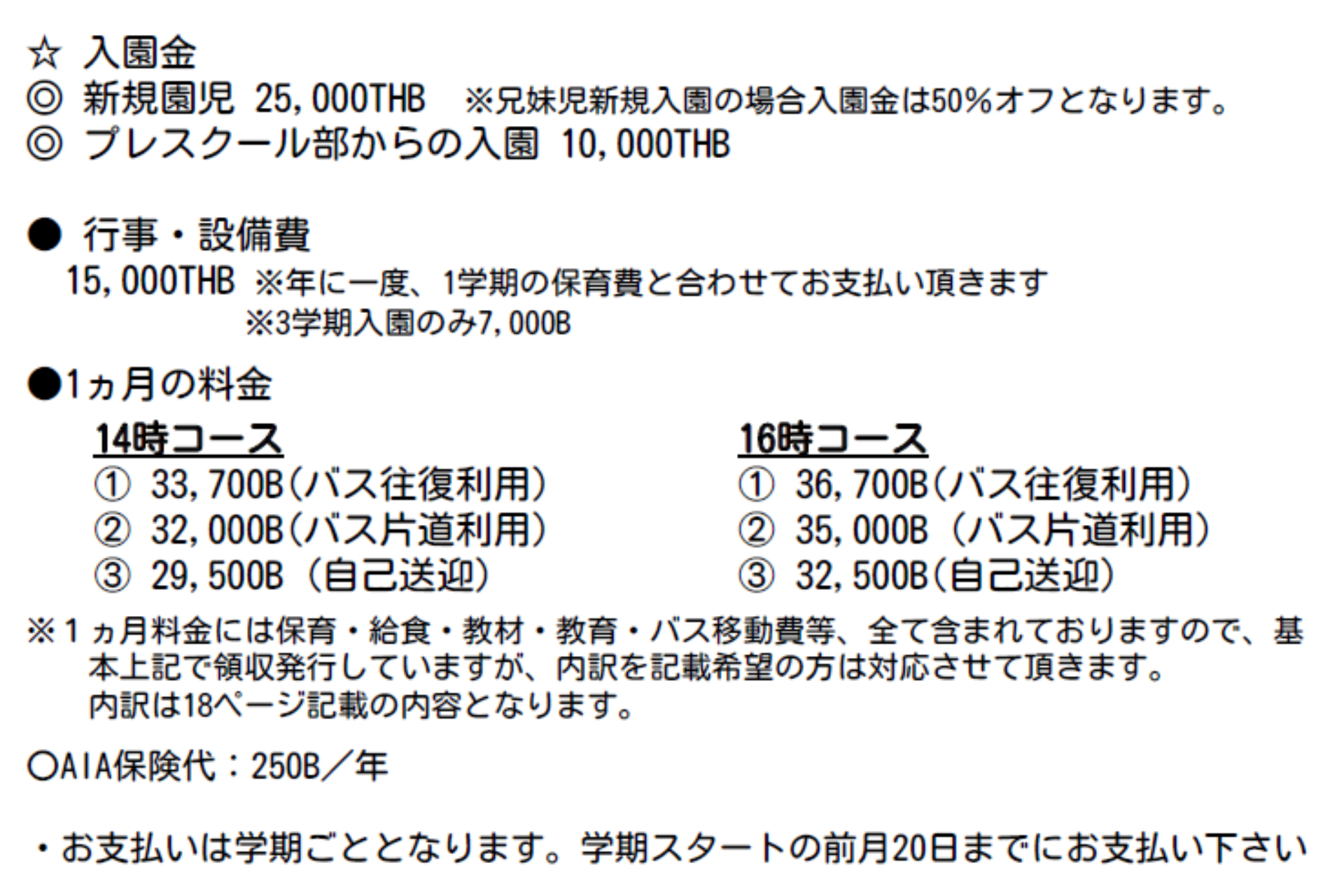 ※保育料は面談日当日にご案内し、その後お支払いの手続きをしていただきます。