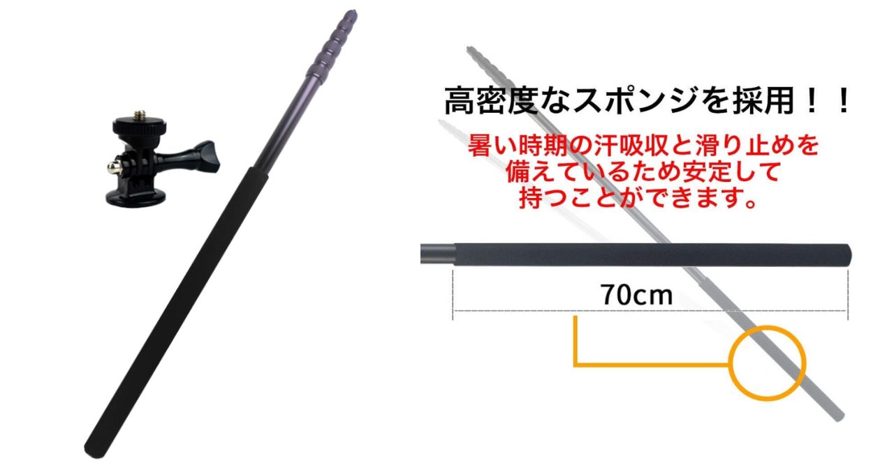 1m58cm~最大10mまで伸縮自在の超ロングタイプで、一般的な自撮り棒では捉えられない角度や距離からの撮影を可能にします。