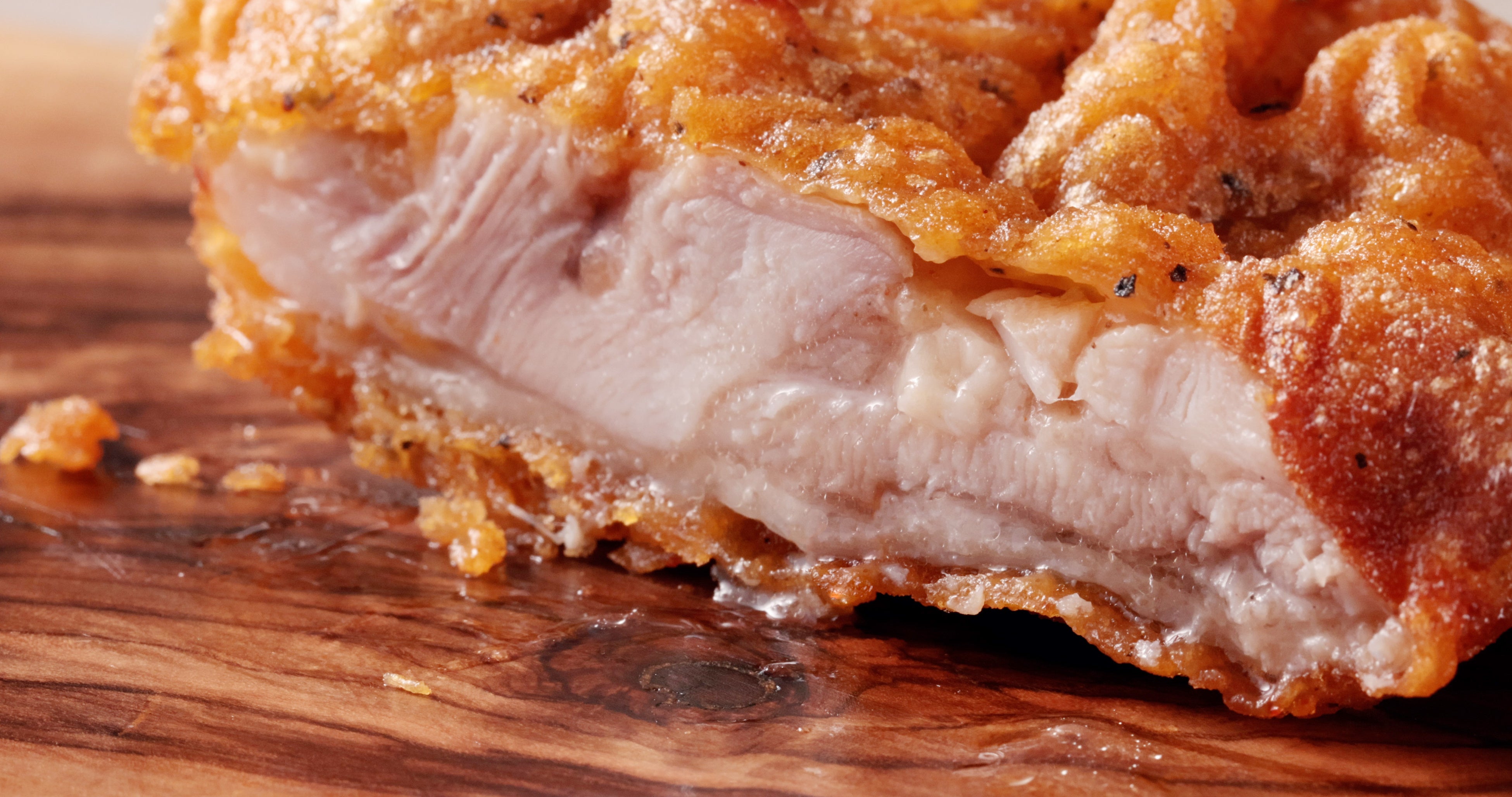 若鶏の上もも肉(サイ)を使用。プリッとジューシーで柔らかい肉質が特徴です。ザクッとクリスピーな食感と衣の相性抜群!