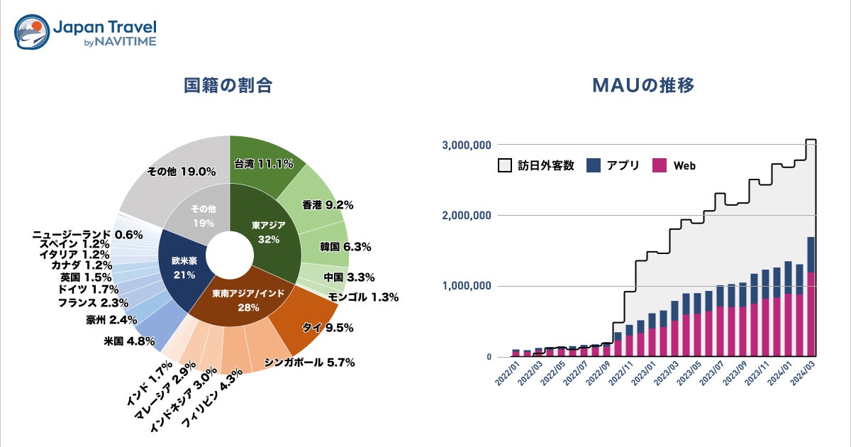 ※3 「国籍の割合」は、『Japan Travel by NAVITIME』アプリアンケートより、2024年3月1ヶ月間の回答を集計。