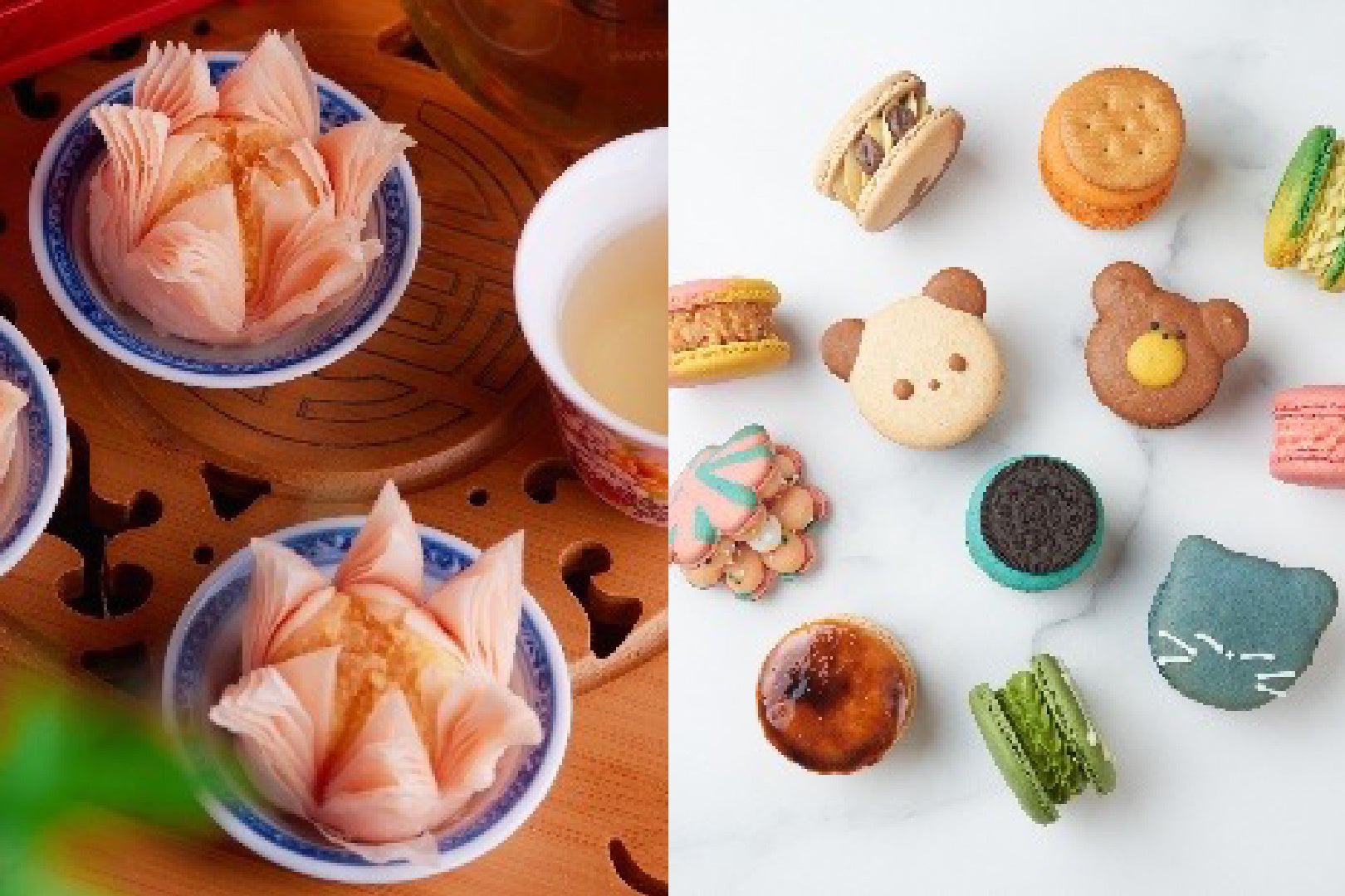 左上より、月餅(中国)・杏仁豆腐&九龍球(香港)・甜点心(桃饅頭)(香港)・トゥンカロン(韓国)