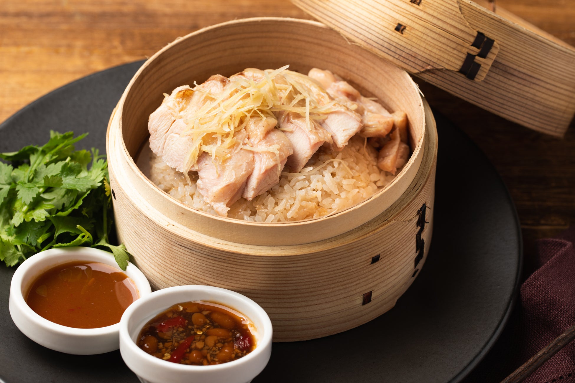 ②蒸篭で仕上げたカオマンガイ~高知県産生姜で炊きこんだ香りが楽しめる生姜ライス~が食べれる!