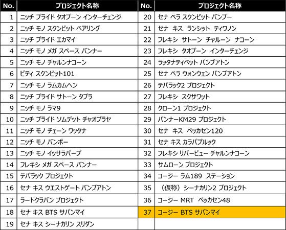 ●は当社の住宅分譲プロジェクトを示す(すべてセナ社との共同事業)。