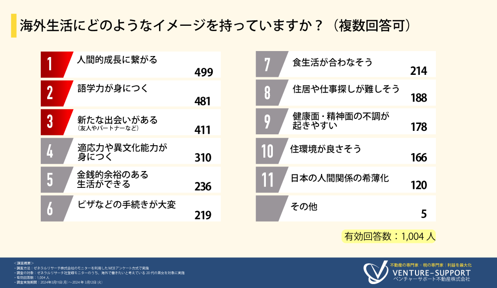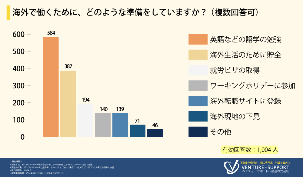 海外で働きたいと考えている20代の男女に調査を実施。