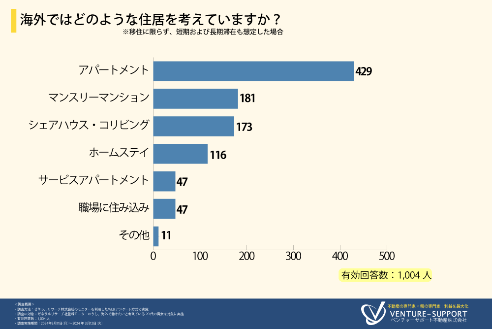 海外では「アパートメント」での生活を考えている人が4割を超える