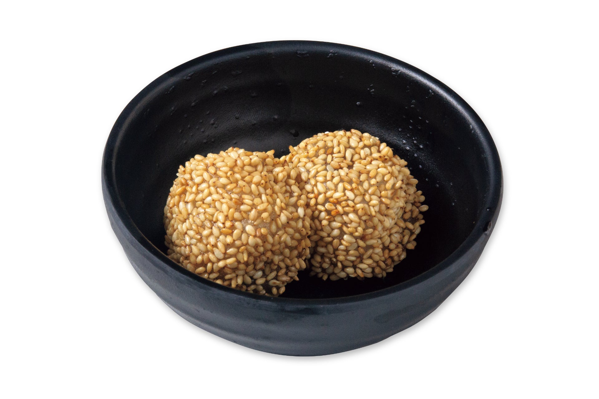 揚げたての胡麻が香ばしい、あんこの入ったもっちり食感の熱々団子。
