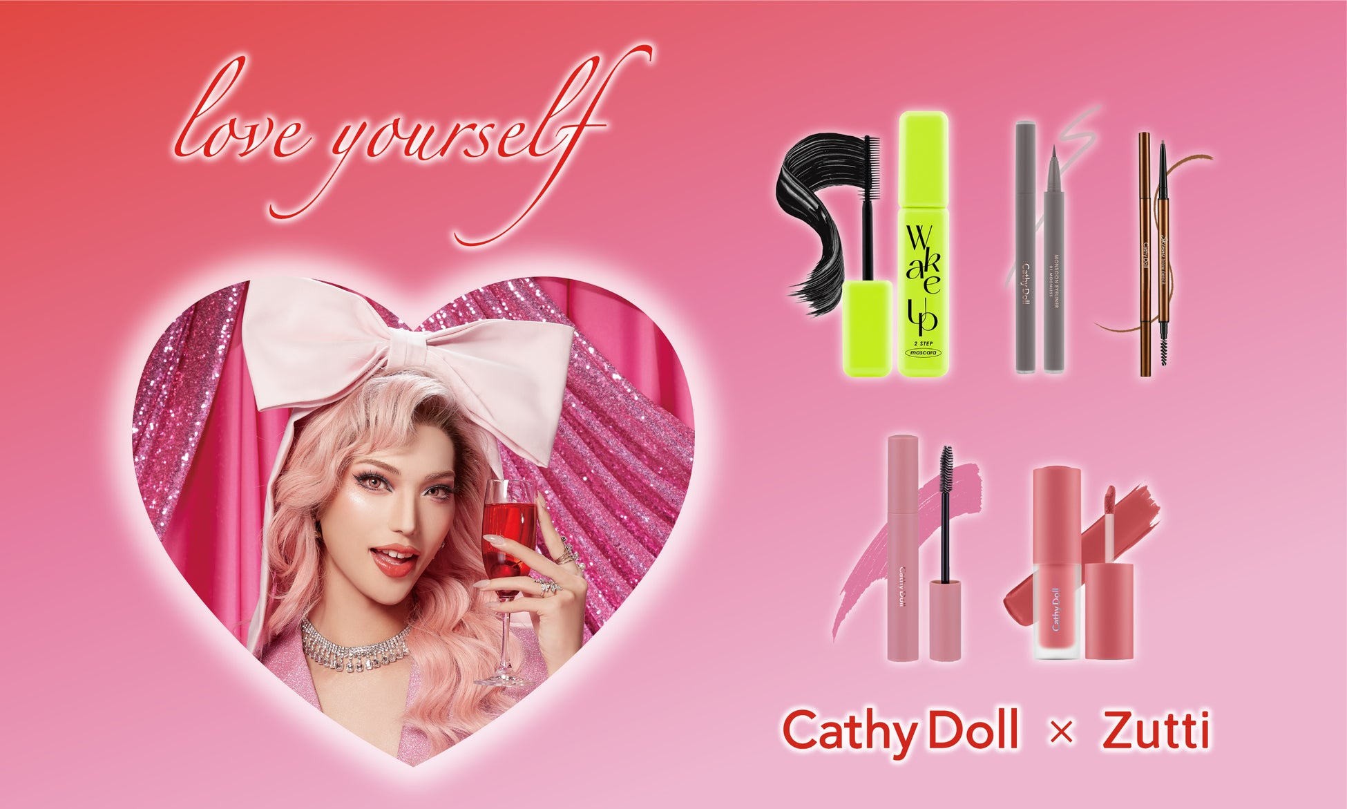 「Cathy Doll × Zutti スペシャルBOX(love yourself)」は、Zutti Mattiaのビジュアルがプリントされたメッセージ入りのハート型オリジナルBOXに、Zutti Mattia自らセレクトしたコスメが詰まった豪華なセットBOX。数量・期間限定の5点セットです。