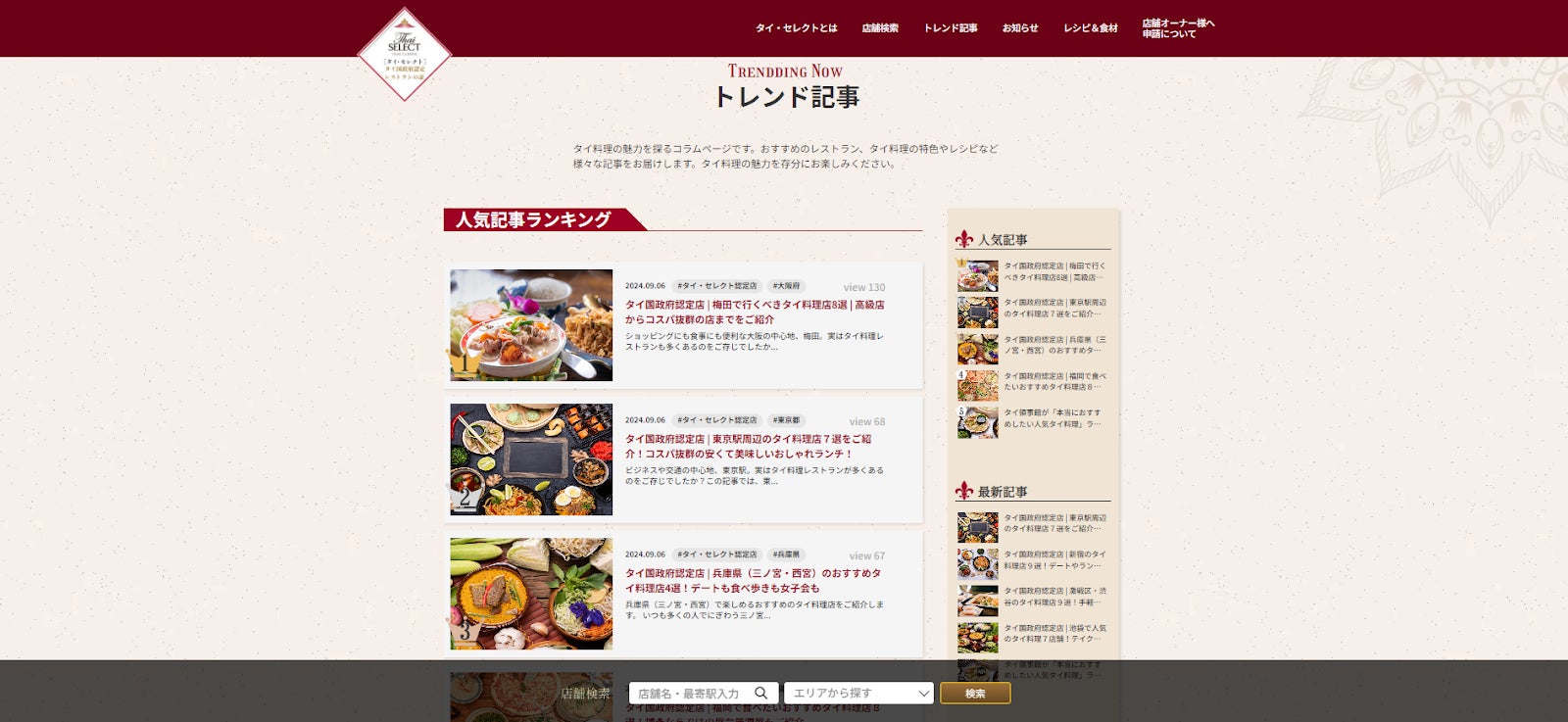 今回のリニューアルで、タイ料理の魅力を発信する「トレンド記事」機能を追加しました。