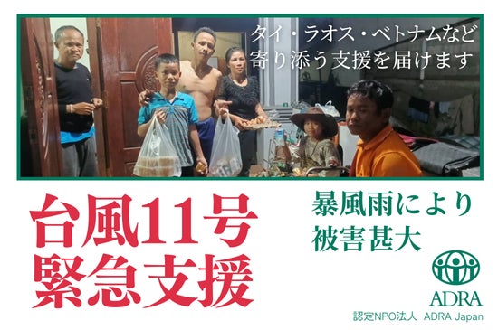 認定NPO法人ADRA Japan (アドラ・ジャパン、 所在地:東京都渋⾕区神宮前1-11-1 理事長:柴⽥俊生)は、暴風や豪雨による洪水や土砂崩れで、道路や橋、家々が破壊され、多くの人々が避難生活を強いられているタイ、ラオス、ベトナムで支援活動を開始しています。