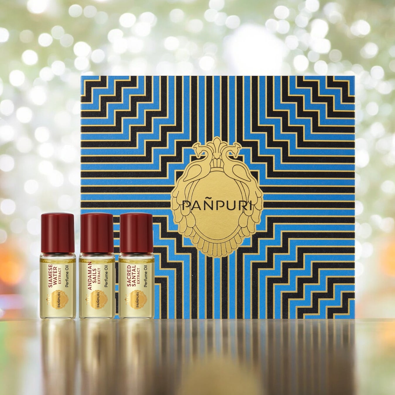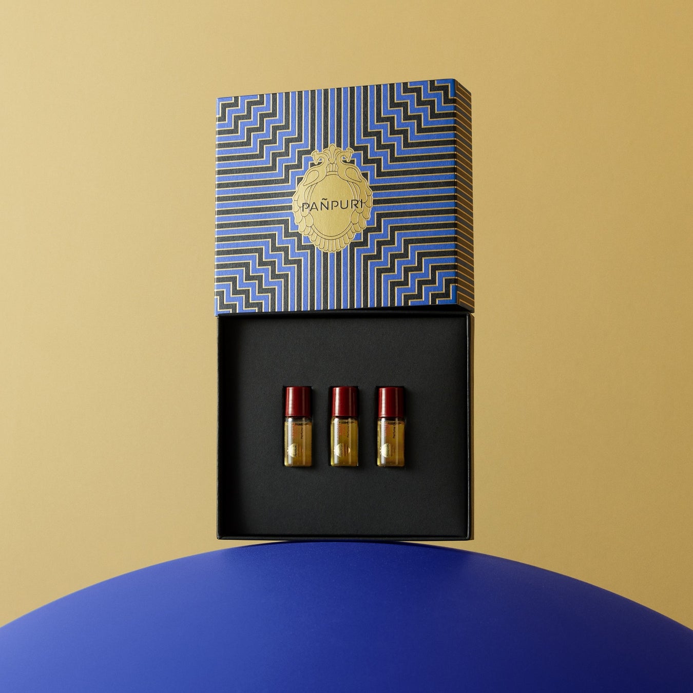 古代の香油文化にインスピレーションを得て生まれたパフュームオイル(オイル香水)より、アイコニックな3つの香りのミニサイズを限定セットに。アーユルヴェーダで使われるオーガニック認証のモリンガシードオイルをベースに、芳香成分を高濃度で配合しており、長時間香りが持続します。肌の熱で温められ、近距離で優しく香るため、香りで周囲を圧倒することがありません。香りを感じることができるのは、あなたとあなたの近くにいる愛する人だけ。小さなバッグにもスッと入るミニサイズながら使いやすいロールオンタイプ。狙ったところに塗布しやすく、量の調節や外出先での塗り直しにも便利。