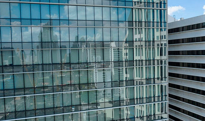 本認証では、北側・南側外壁に取り付けたルーバーによる日射遮蔽、タイのオフィスでは珍しい個別空調の採用や照明・空調・ブラインドのセンサー制御による省エネ性能の向上、エントランスロビーにおける床冷房システムの採用などが評価されました。また、モバイル端末で消費エネルギーの見える化を図るなど、利便性とともに環境にも配慮した快適な執務環境を提供しています。