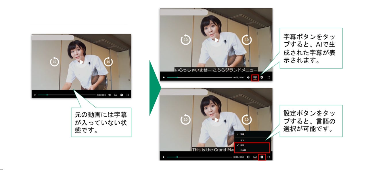 動画型実行マネジメントシステム「ABILI Clip」は、動画を活用して多拠点ビジネスのマネジメントや教育、コミュニケーションなどの効率化を図るITサービスです。昨年12月に自動翻訳機能を実装し、クリックひとつで日本語の音声を英語へ翻訳、字幕を付加する機能を提供してきました。