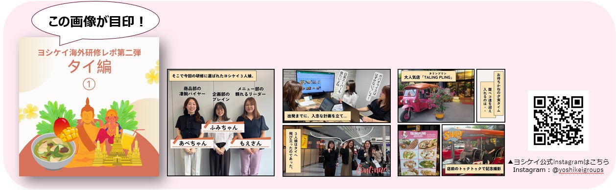 タイ研修の様子をヨシケイ公式Instagramで漫画風に紹介。全6話に渡り研修の様子を公開しています。現地で食べたものだけでなく、観光スポットや豆知識など様々な話を盛り込んでいます。タイ旅行を考えている方も必見です。