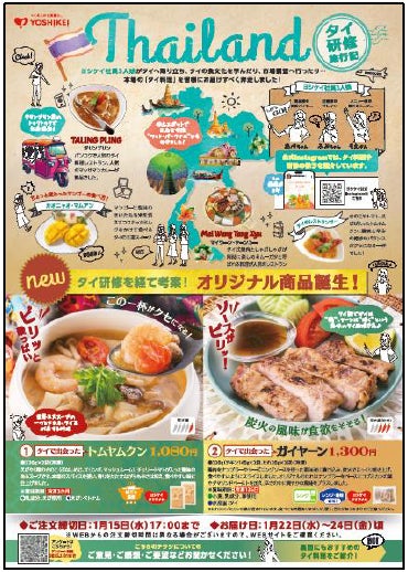 つくる人から笑顔に。をテーマに全国でミールキット宅配サービスを提供するヨシケイグループ(本部所在地:静岡県静岡市/代表取締役:井野口 雄一)は、1月に別売企画として「タイ企画」を実施します。企画には社員がタイ現地に訪れ食べたものを参考に開発したオリジナル商品、厳選した商品8品が登場します。
