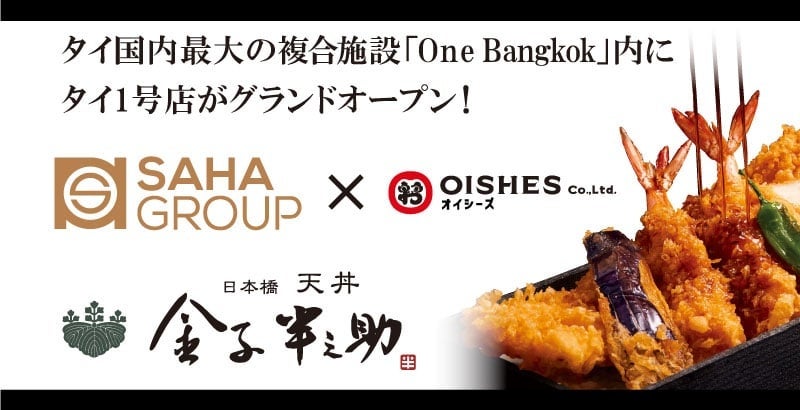 人気飲食店、つけ麺「つじ田」や「日本橋 天丼 金子半之助」「中華そば専門 田中そば店」などをグループで運営する、オイシーズ株式会社(本社:東京都 千代田区 、代表取締役 工藤 智、以下「当社」)は、タイ王国の財閥系大手企業グループの「Saha Group(サハ・グループ)」内の中核企業で持株会社の「Saha Pathana Inter-Holding Public Company Limited」(タイ証券取引所上場、本社:タイ王国バンコク)の傘下に設立された「Kaneko Hannosuke (Thailand) Co., Ltd.」(本社:タイ王国バンコク)とタイ王国国内における「日本橋 天丼 金子半之助」の出店に関するライセンス契約を締結しておりましたが、同社と共に、2024年11月22日、タイ王国内最大規模の複合施設「One Bangkok」内に「日本橋 天丼 金子半之助」タイ王国1号店をグランドオープンいたしました。