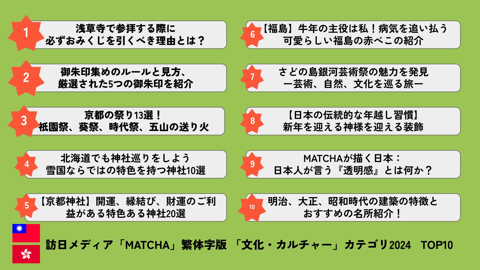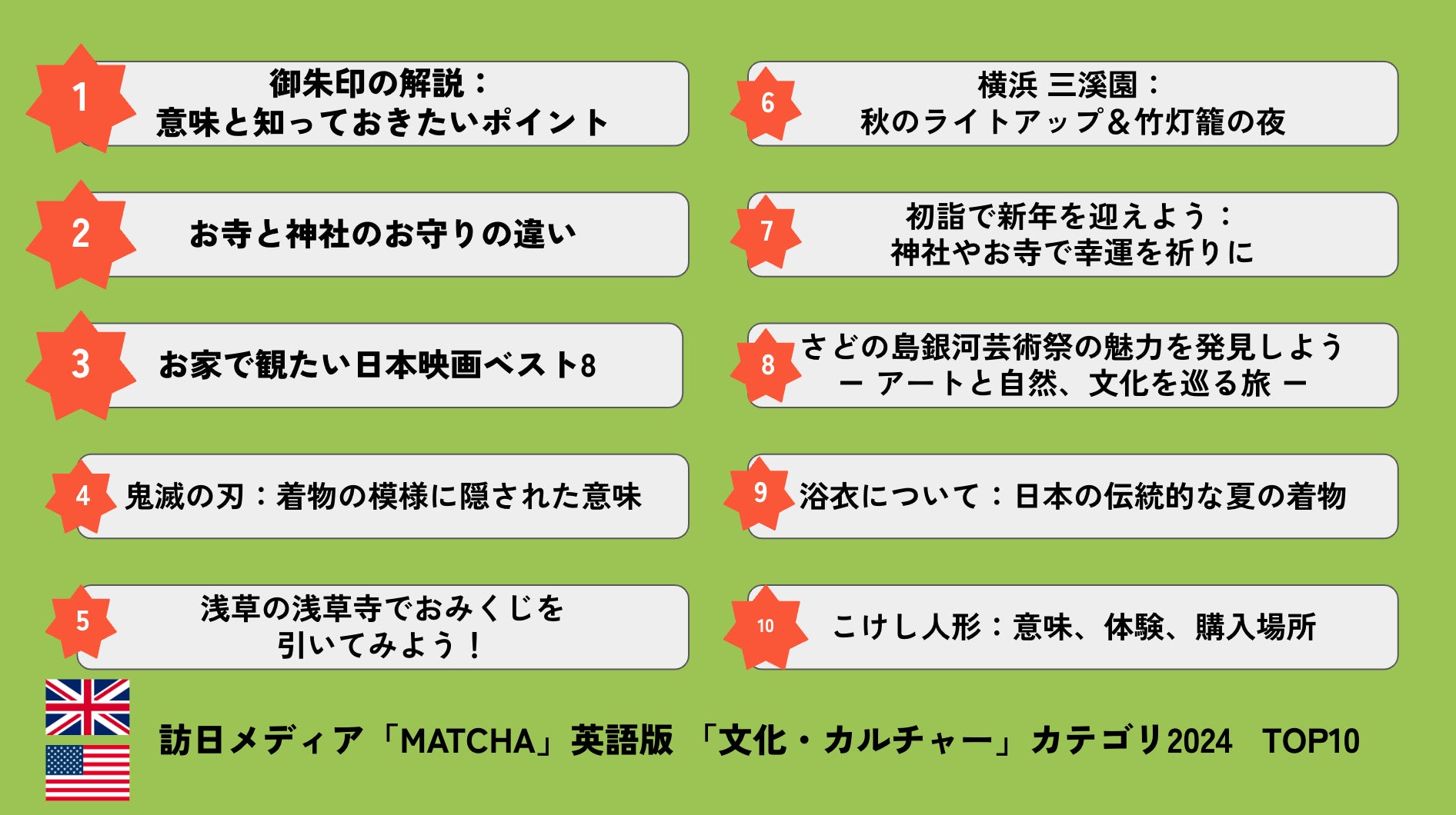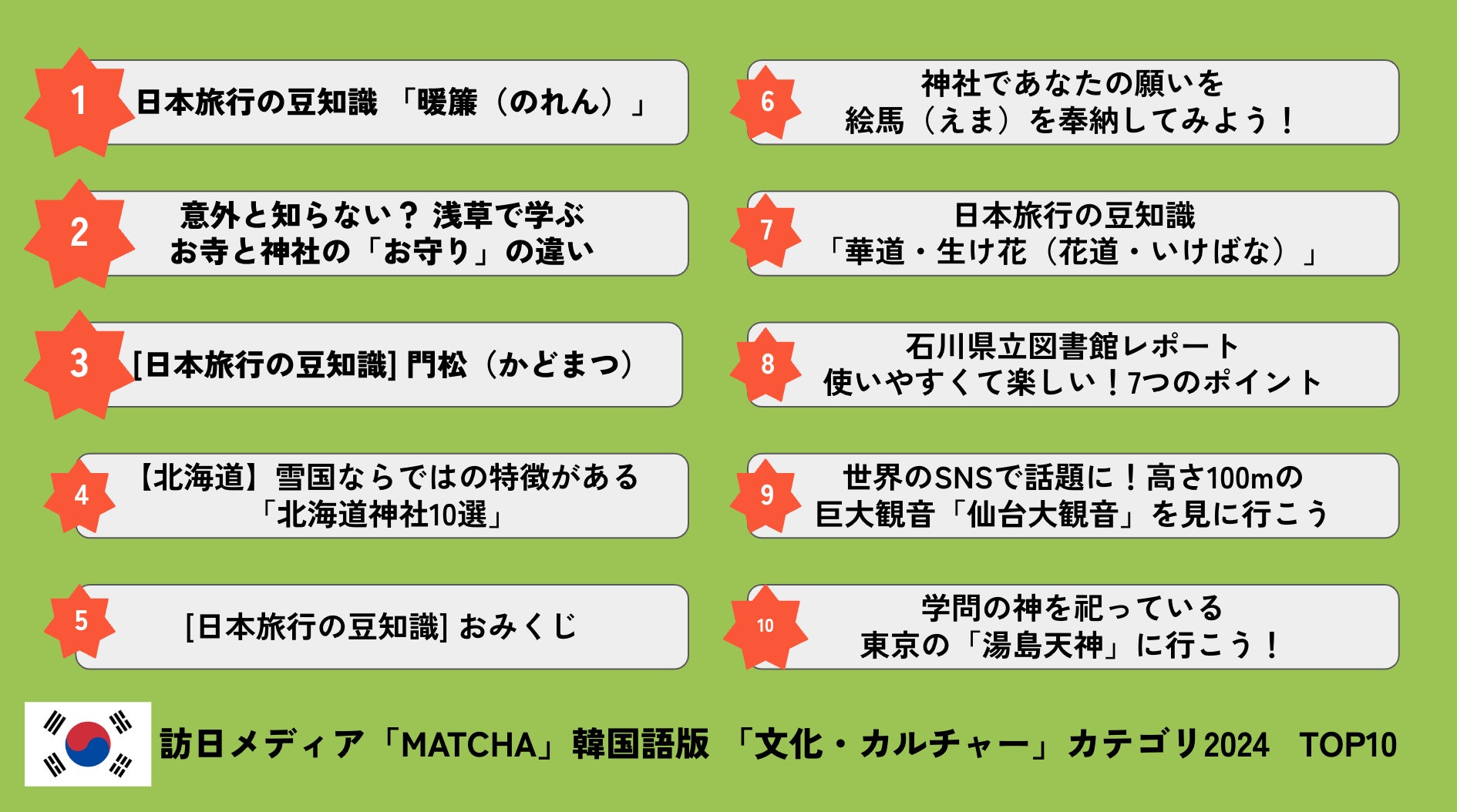 訪日メディア「MATCHA」 「文化・カルチャー」カテゴリ TOP10