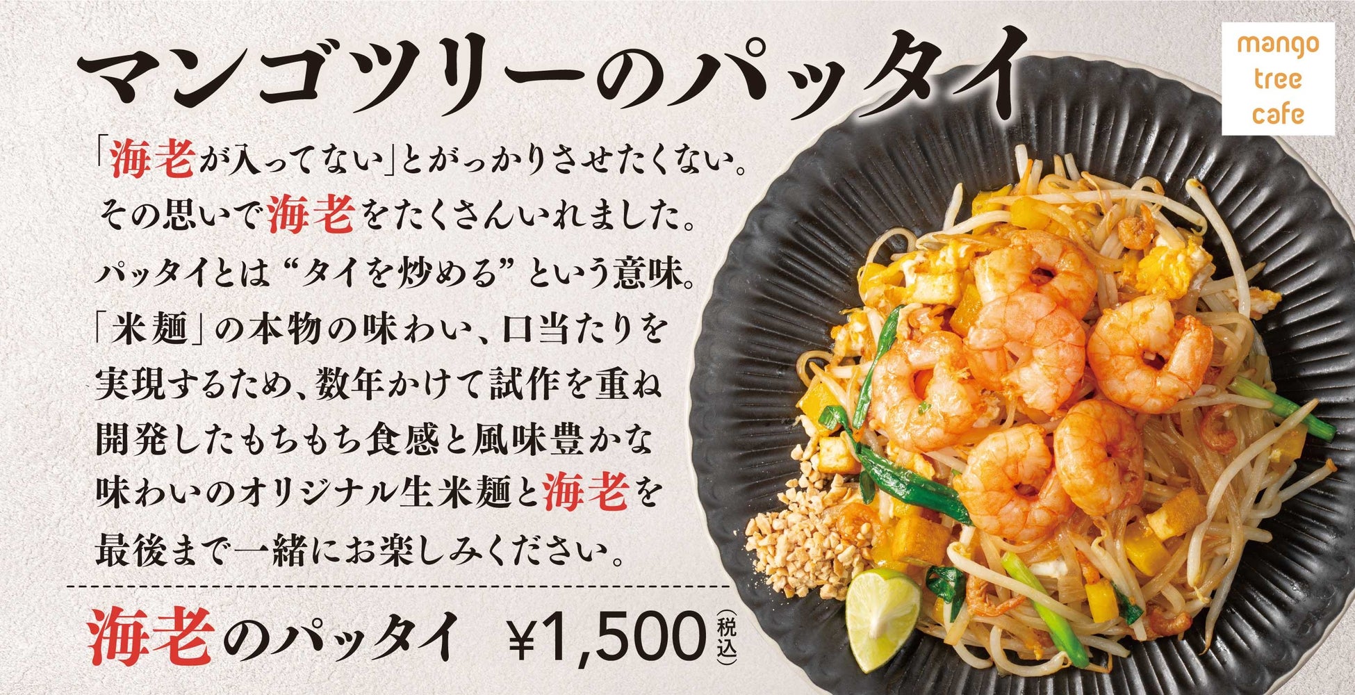 アークランドサービスホールディングス株式会社の子会社、海外の本場の味を日本で展開する株式会社ミールワークス(本社:東京都千代田区、代表取締役社長:船橋 洋治、以下MW)は、タイ・バンコクに本店をもつ「マンゴツリー」の姉妹店で本格タイ料理を日常的に楽しめる「マンゴツリーカフェ」にて、2025年1月8日(水)より期間限定で「マンゴツリーのパッタイ」3種類を販売いたします。