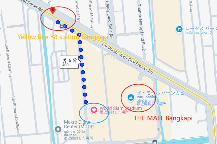 – 駅からワールド・サイアム・スタジアム(World Siam Stadium)までは、