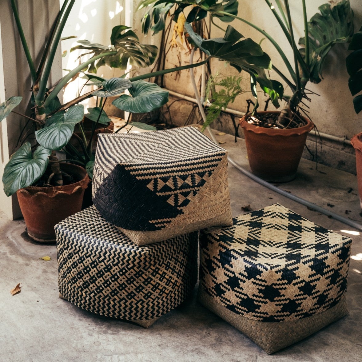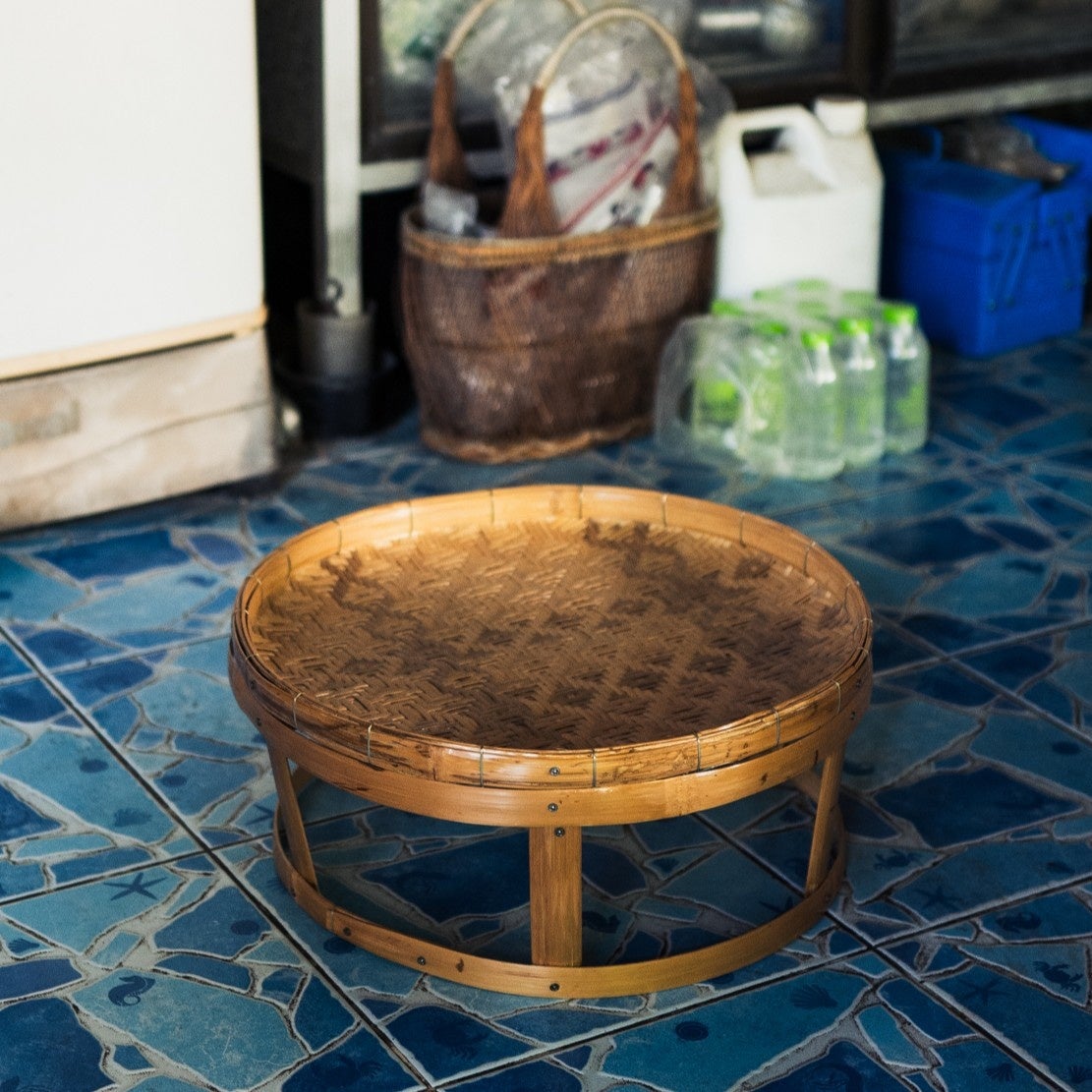 竹細工の籠をリプロダクションされているモノや地域支援のために分業作業で作られているモノまで、形も用途も様々な種類の竹籠を買い付けてきました。タイでは古くから身近な素材として竹が利用されています。竹は軽量で強度があり、加工が容易なため、日常生活のさまざまな場面で使用され、竹籠は食料の保存や運搬、釣り道具、さらには装飾品としても利用されてきました。竹籠製作には、代々受け継がれてきた手工芸の技術が必要で、作り手は、竹を選び、切り、編む技術を駆使して、美しい形状の籠を作り上げます。これらの技術は、地域のコミュニティや家族の中で伝承されてきました。現在、竹籠は実用的なアイテムとしてだけでなく、インテリアやアートとしても人気があります。特にエコ意識の高まりとともに、持続可能な素材としての竹の価値が再評価されています。