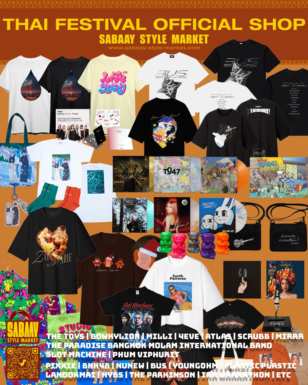 タイの音楽・ファッション・カルチャーなどを日本国内でも紹介し届けるべく、アーティスト公式グッズ、現地ファッションブランド、レコード、書籍、アート、チケット、雑貨など幅広いジャンルにわたったタイコンテンツを取り扱う、日英泰語に対応したグローバルECマーケットサイトです。タイアーティストの日本公演開催・エージェント業務などを通し、アーティストと直接連携することで、日本初となる「タイ音楽特化型EC」としても、独占アイテムやイベント連動企画を展開し、今年のタイフェスティバル東京2025では、タイ音楽界を代表するアーティスト4組による単独ライブコンサートを開催し、タイ国内外で高い人気を誇るアーティストらが、日本の音楽ファンの皆さまに向けて、特別なステージをお届けする!